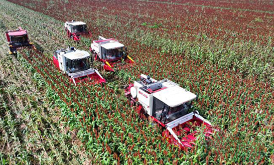 机械轰鸣遍野红 河北阜城4万亩高粱迎丰收