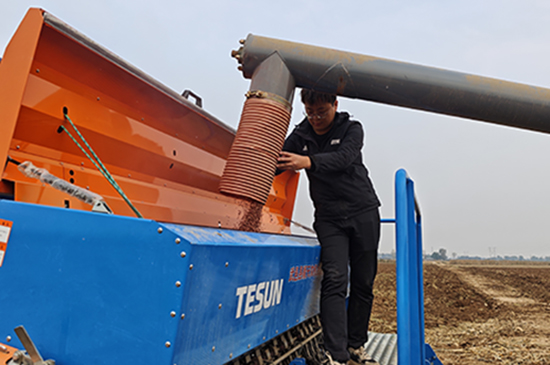 在故城县饶阳店镇薛官屯村的麦田里,种粮大户郎同尚正俯身查看刚翻整过的土壤,身后一台新型小麦精量播种机匀速前行,一次性完成开沟、施肥、播种、覆土等多道工序。田垄间,三五名农民紧随播种机后,不时弯腰检查播种的深度与密度,确保每一粒种子都能精准入土。“趁着这几天天气好,我们正抢抓农时加紧播种,早一天心里就多一分底气。”郎同尚抓起一把泥土轻轻一捏,继续说道,“县里的农技专家昨天刚来指导过,建议我们适当增加播种量,采用浅播技术。眼下地温偏低,按照技术规范,我们把播深控制在3厘米左右,这样更有利于出苗。”