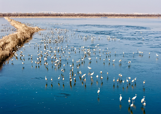 “京津冀最美湿地”衡水湖:冰封鹤舞迎新年