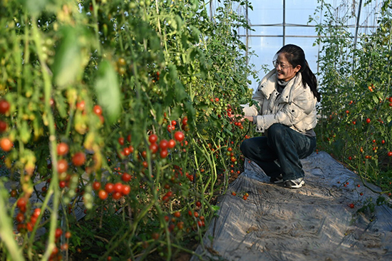 冬日里,冀州区现代农业融合创新基地西红柿大棚里暖意盎然,枝叶间,满棚的西红柿长势旺盛。技术员张佳鑫来到棚内一个电子显示屏前,仔细查看屏幕上显示的温度、湿度等数值后,便在智能控制柜前按动按钮,棚顶的保温被和遮阳帘随即缓缓收起。