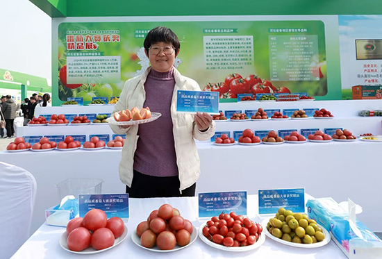来自深州的河北舜成农业发展有限公司负责人明秀莲凭借公司培育的“樱桃番茄”品种获得“番茄大王”称号。她欣喜地介绍,“我们种植的‘樱桃番茄’抗病性强、口感好、果型漂亮,在种植过程中,我们坚持选用有机肥料,种植出来的番茄口感好又健康。”