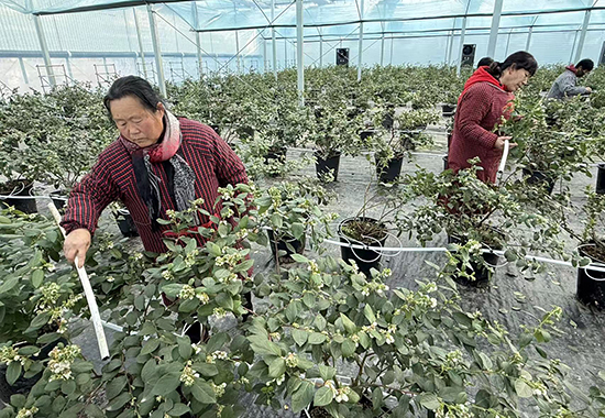 除了精细化的水肥与温度管控,熊蜂、蜜蜂协同授粉的模式更显匠心。熊蜂耐低温、授粉效率高的特性,搭配蜜蜂的辅助作用,既能有效提高坐果率,又能减少畸形果,为蓝莓优质高产筑牢基础。而这些科技种植手段的落地,也让产业带动就业的效应愈发凸显,为周边村民搭建起家门口的“增收桥”。