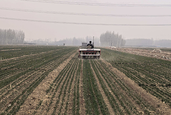 随着气温回升,小麦返青期管理进入关键阶段。霞口镇小朱庄村的麦田里,种植大户朱荣海正驾驶着施肥机械在田间往返作业。“施完肥就浇水,这是小麦返青期的关键一招。墒情好了,麦苗才能吸饱喝足,为后期生长积蓄足能量。”他介绍道,为保障灌溉用水畅通,小朱村提前对灌溉渠道进行了清淤维护,并结合地块墒情和苗情长势,科学制定灌溉方案,分块、分时进行浇灌,既保障小麦生长需求,又能最大限度节约水资源。